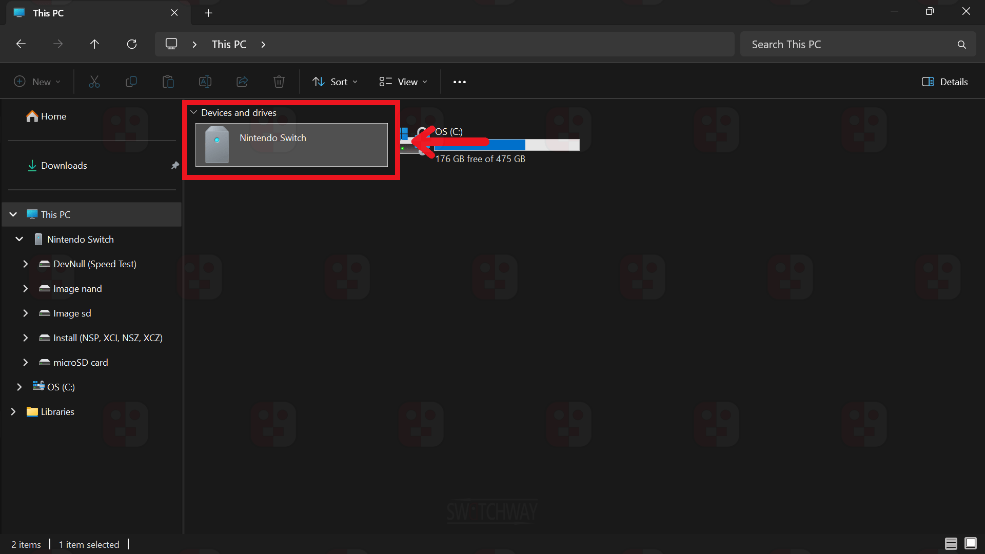 - Your Switch will now connect to the PC and show up as “Switch” in Windows explorer.